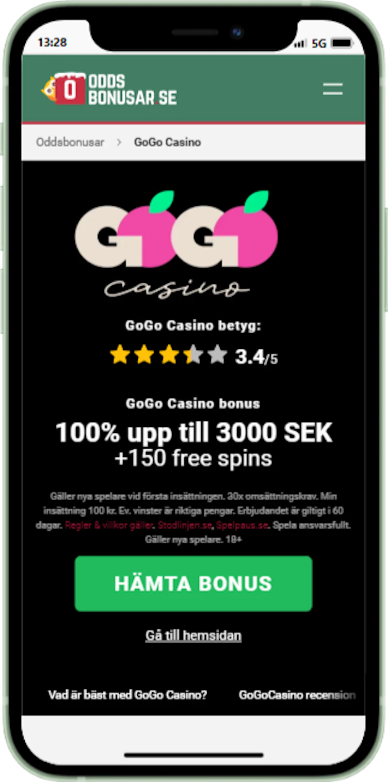 - GoGoCasinos casino bonus ger 100% på den första insättningen upp till högst 3000 SEK. Dessutom tillkommer 150 free spins i Pirots 3, värda 2 kronor styck. Minsta insättning 100 SEK, omsättningskrav 20x, giltighetstid 60 dagar.