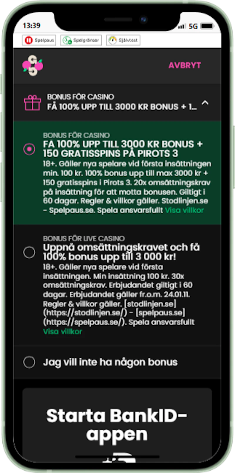 - Gör din första insättning med Swish eller Trustly